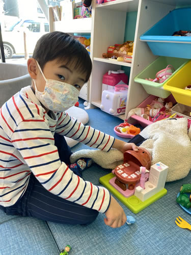 ニコおとなこども歯科では、保育士の国家資格を持つスタッフが在籍しておます。キッズルームでお子さんのお相手をいたしますので、お母さん・お父さんは安心して治療をお受けください。